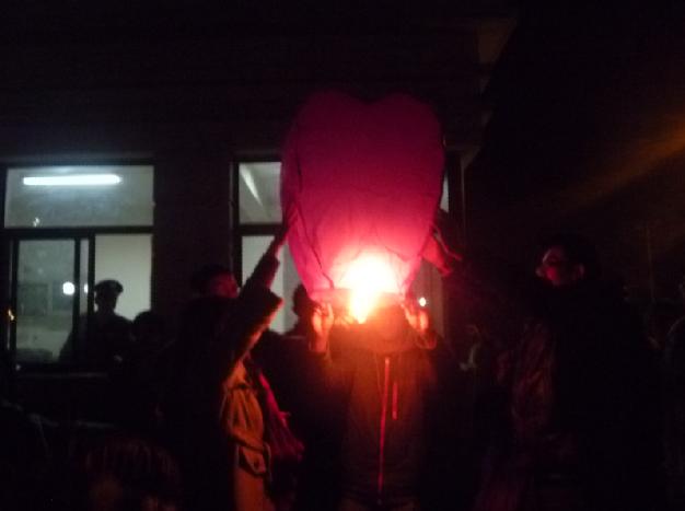 晚会的一个亮点放飞孔明灯。晚会接近尾声,同学们齐聚36365线路官网北侧门将写有新年愿望的孔明灯放飞空中。夜空也因今晚而变得更加美丽了。
