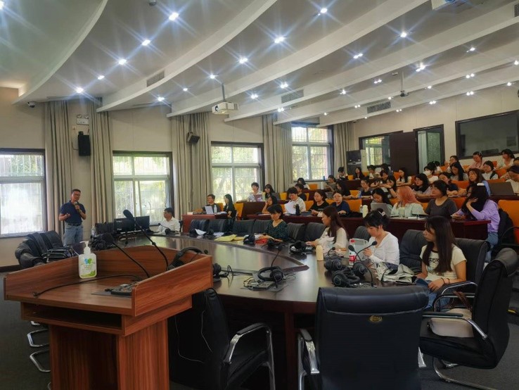 9月19日下午,郑国锋教授在徐汇校区三教三阶上作题目为“语言规划研究的目标、方法和路径”的学术讲座。本次讲座由副院长张正军教授主持,共60多名师生参与。