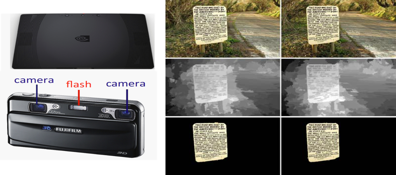 4.立体视觉显著性计算与智能缩放方法。研究立体图像在显示过程中,将立体图像对的深度信息引入到视觉显著性计算中,计算视觉显著性区域以及对这些重要关注区域进行有效分割。通过立体相机Kinect设备获得场景的真实深度信息,将深度信息引入到立体图像的智能缩放中,可以获得复杂场景下较好的智能缩放效果。利用立体图像的深度信息计算图像的显著图,更多地保留近处的物体,提高智能缩放的图像视觉效果。相关研究成果发表在IEEETCYB, IEEECSVT,IEEETIP和IEEETPAMI等权威国际期刊上。