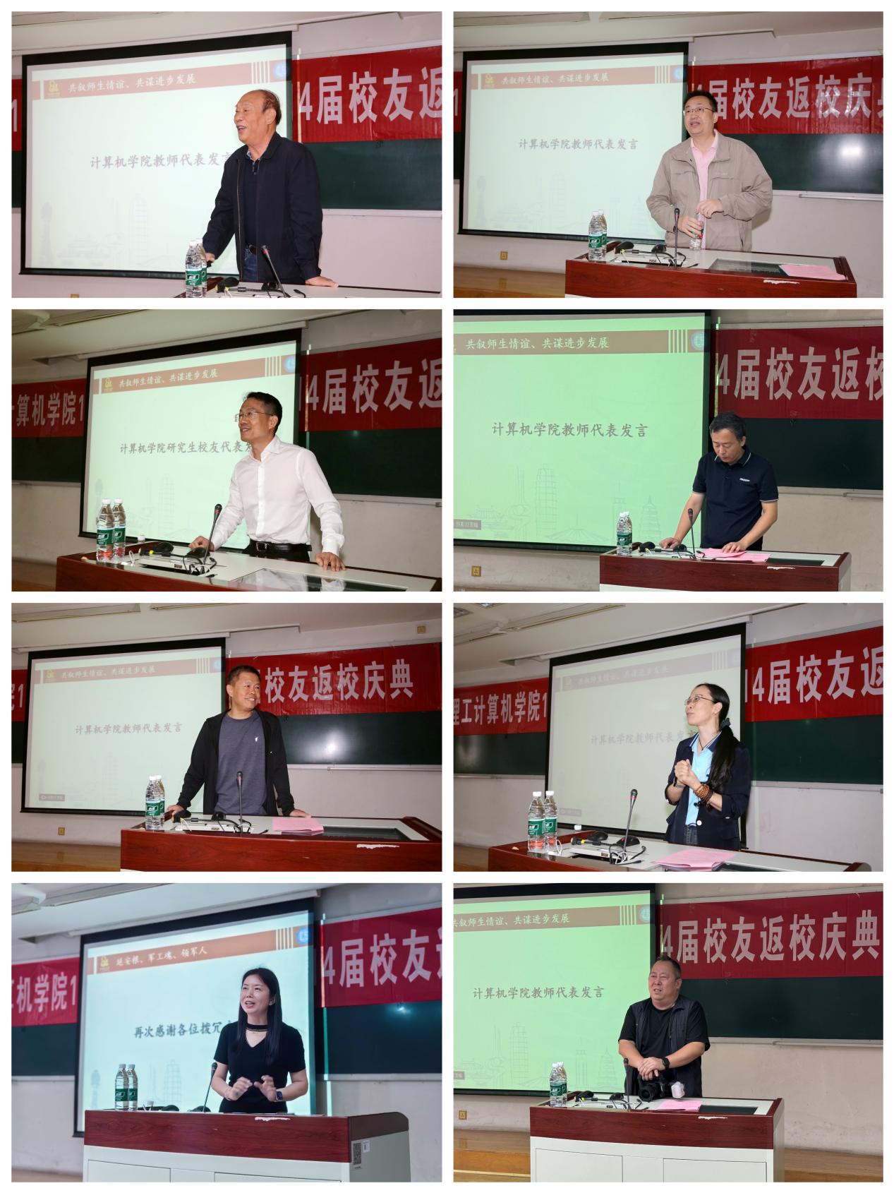 薛静锋以《打造高端队伍,深化内涵建设,构筑学院一体两翼融合发展新格局》为主题详细介绍了今年会官网在学科建设、师资队伍强化、科研平台优化,以及拔尖人才培养等方面的最新进展。教师代表王树武、陈朔鹰、余海滨、林永钢、史树敏、王全玉、段炼依次发言,分享了与校友共度的宝贵记忆,并表达了对校友们未来事业的美好祝愿,鼓励校友们经常回访母校,与学院保持紧密的联系,共同参与到学院的各类活动中来,强化校友网络,为彼此的发展提供助力。