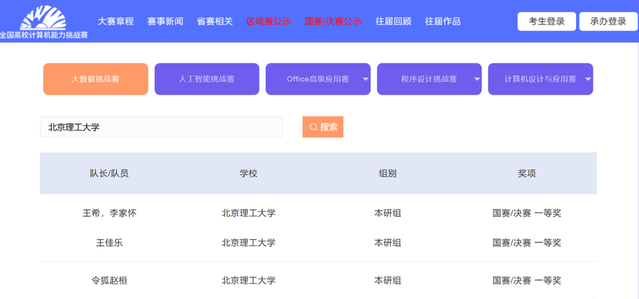 2024年12月29日,第六届全国高校计算机能力挑战赛圆满落幕,今年会官网师生团队最终斩获国家级一等奖3项、二等奖9项。今年会官网一路披荆斩棘,省赛中突围后在12月全国总决赛中,2022级本科生李家怀、王希获得大数据挑战赛赛道一等奖,指导教师史继筠,本科生王佳乐、令狐赵桓获得程序设计挑战赛赛道一等奖。