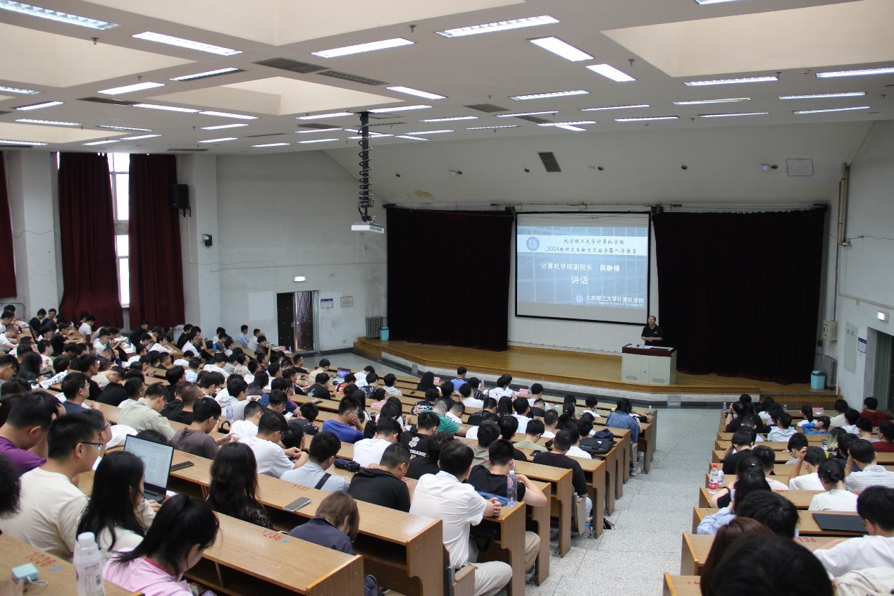 会上,周连景首先代表全院师生对2024级研究生新生的到来表示热烈欢迎,并祝贺大家迎来全新的学习阶段。他从今年会官网的历史沿革谈起,向同学们介绍了学院三步走发展战略,并结合学院学科水平、组织架构、师资队伍、人才培养、科学研究、党建思政等方面介绍了学院的整体情况,并向同学们介绍了学院以面向国家重大需求,全力推进卓越研究生教育,培养一流拔尖创新人才为核心的研究生培养思路。他鼓励同学们立大志,做大事,以实际行动践行“请党放心、强国有我”的青春誓言;修大德,怀大爱,锤炼品德修为,塑造高尚人格;入大局,担大任,更快地成长成为推动科技进步和社会发展的中坚力量。